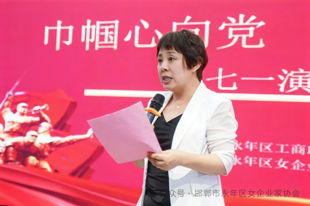 為慶祝中國共產黨成立103周年,回顧黨的光輝歷程,增強女企業家的榮譽感和使命感,為女企業家提供展示風采、交流學習的平臺,凝聚女性力量,推動全區女企業家在永年經濟社會發展中發揮更大的作用,6月29日下午,永年區女企業家協會聯合永年區工商聯、永年區婦聯舉辦“巾幗心向黨 筑夢新時代”“慶七一”演講比賽。